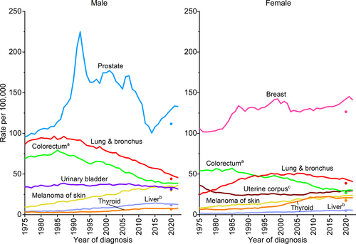 Specific cancer trends highlighted include: