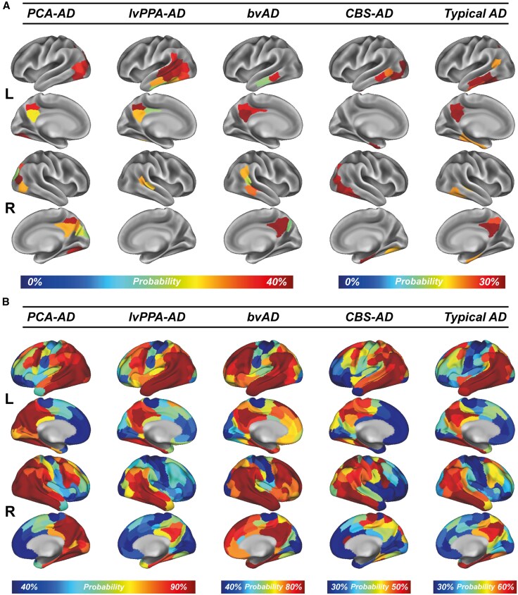 – bvAD and CBS-AD patterns highlighted frontotemporal and motor-related regions, respectively.