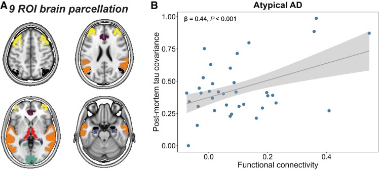 Figure 3. Association between functional connectivity and covariance in post-mortem tau pathology in atypical AD.